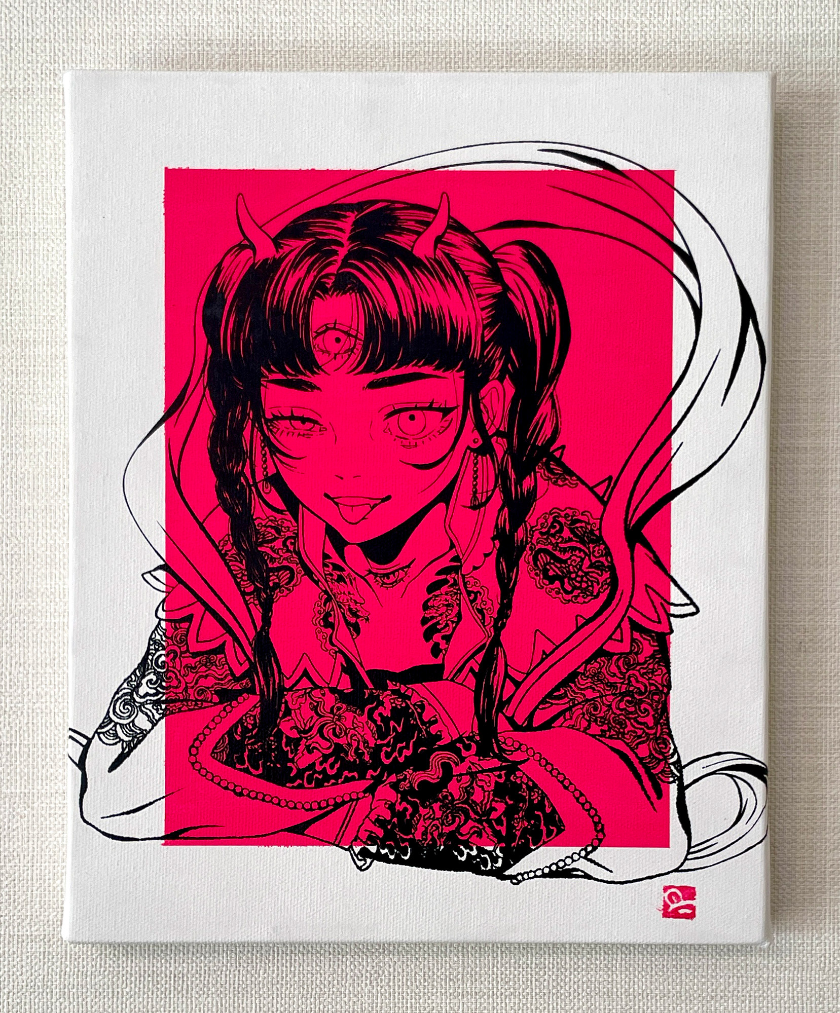 「HAKUTAKU #1」 273×220mm Silk Screen printing,Gesso,Acrylics on canvas 2025